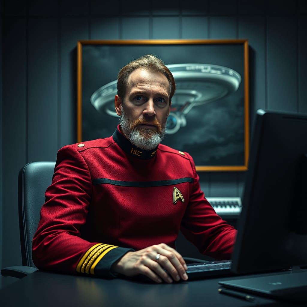 "I can't believe Starfleet ever agreed to these uniforms," Captain Thomas Riker said as he straightened his golden tunic with black accents. With it came black pants and boots. Golden pants were optional as well. Captains had a blue with gold accents variant tunic as well. His wife, the Joined Trill named Lisea Danan, wore a blue counterpart to his own denoting her primary position as station Science Officer rather than wear the gold entitled to her by her position as Executive Officer. Operations and Security personnel wore red tunics.