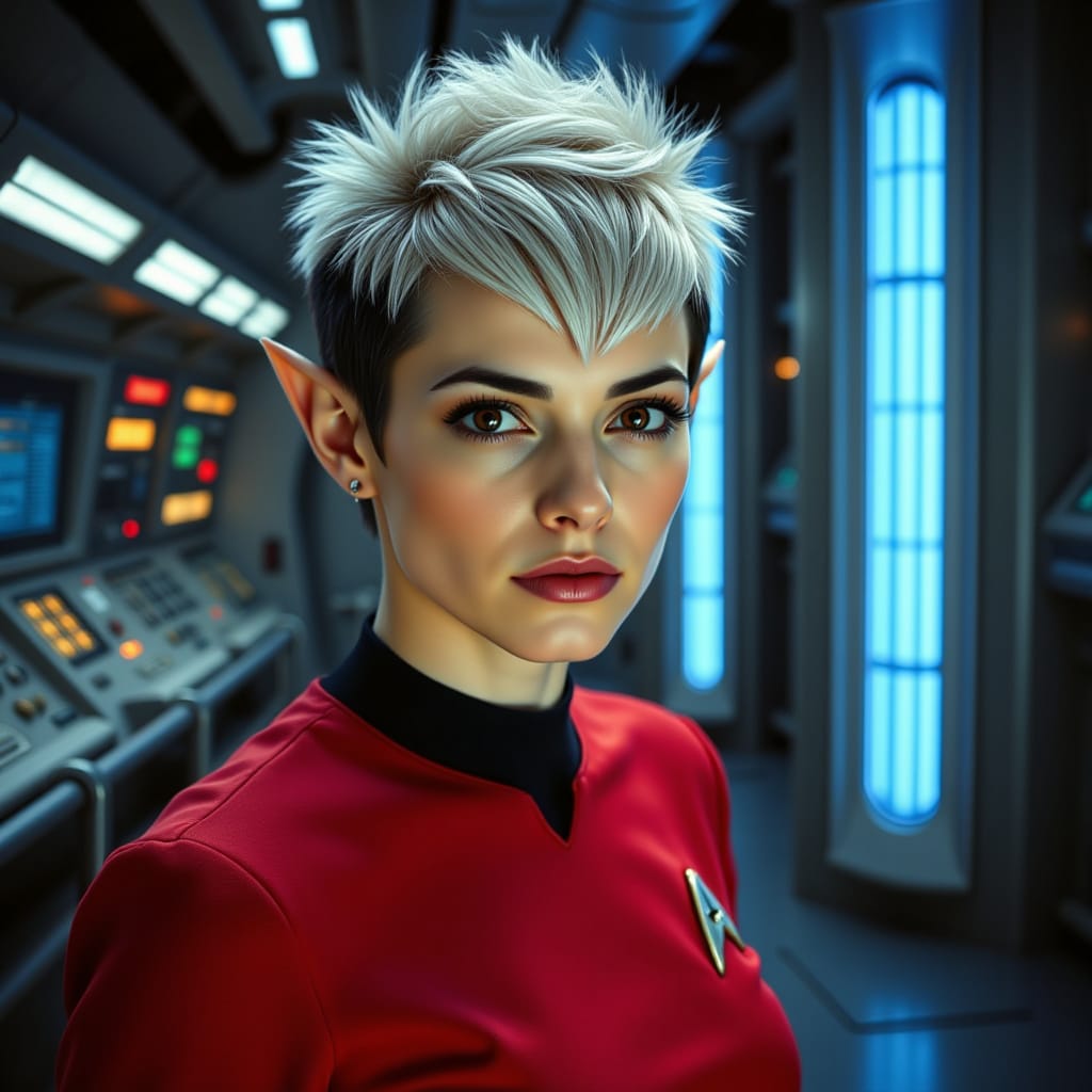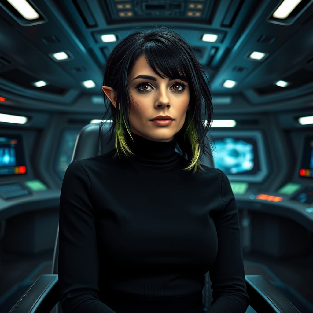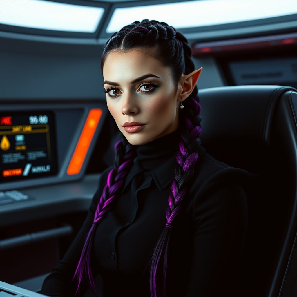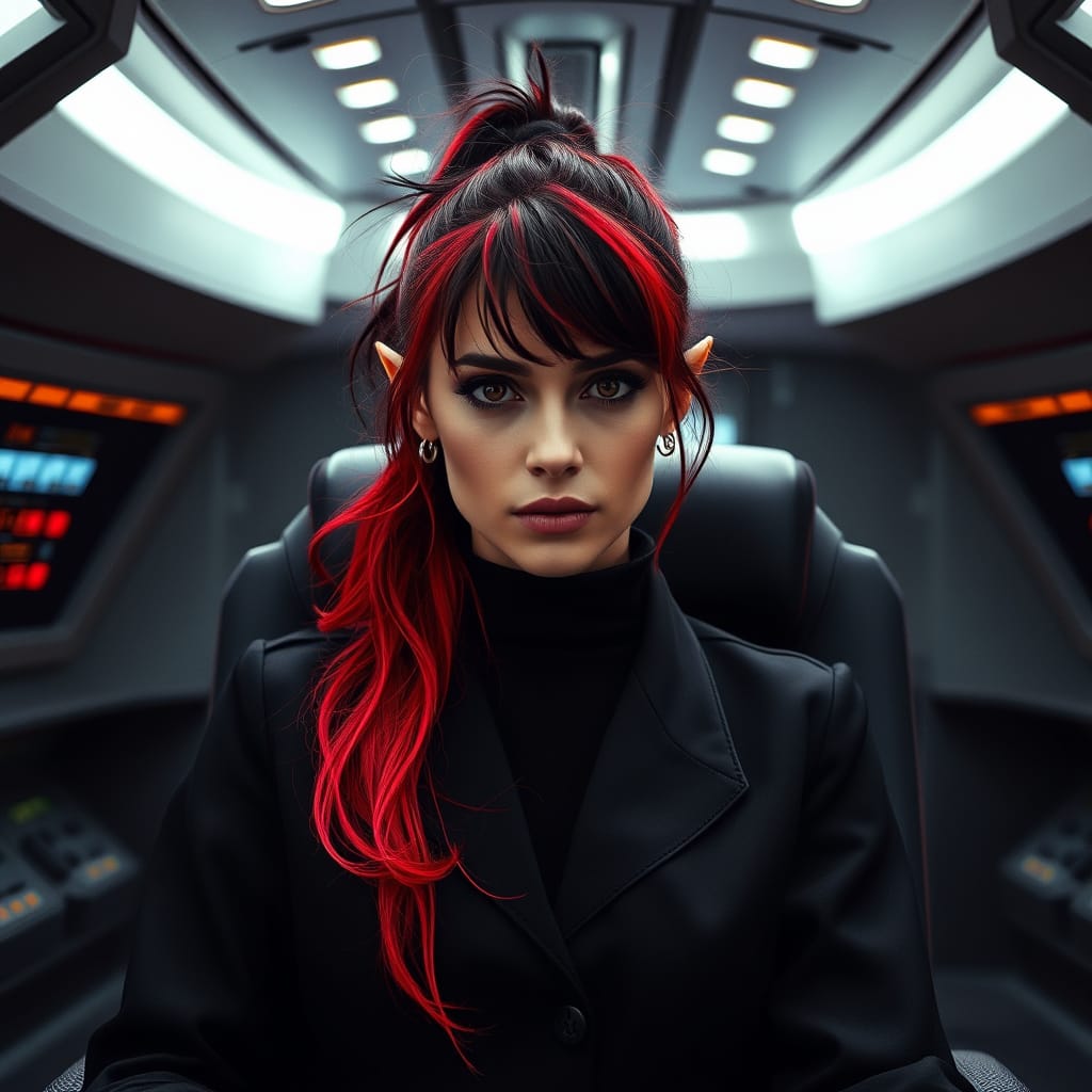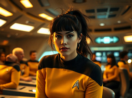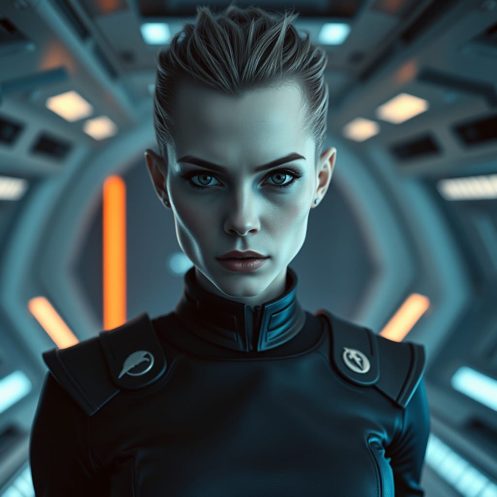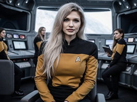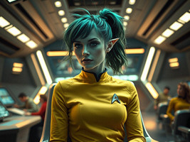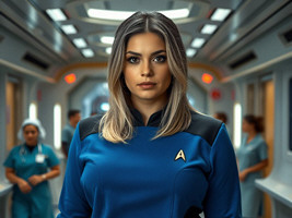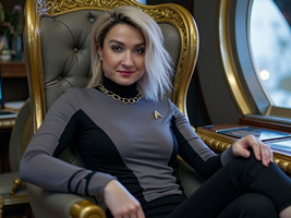 "Nike Noor at yor service.. You must Captain Vaughn," she easily replied, "And you should've seen my Terran Starfleet uniform. Of course, I was a genetic male then. That's why I escaped the Terran universe. To be my authentic self while the Empire restricted gender transition."