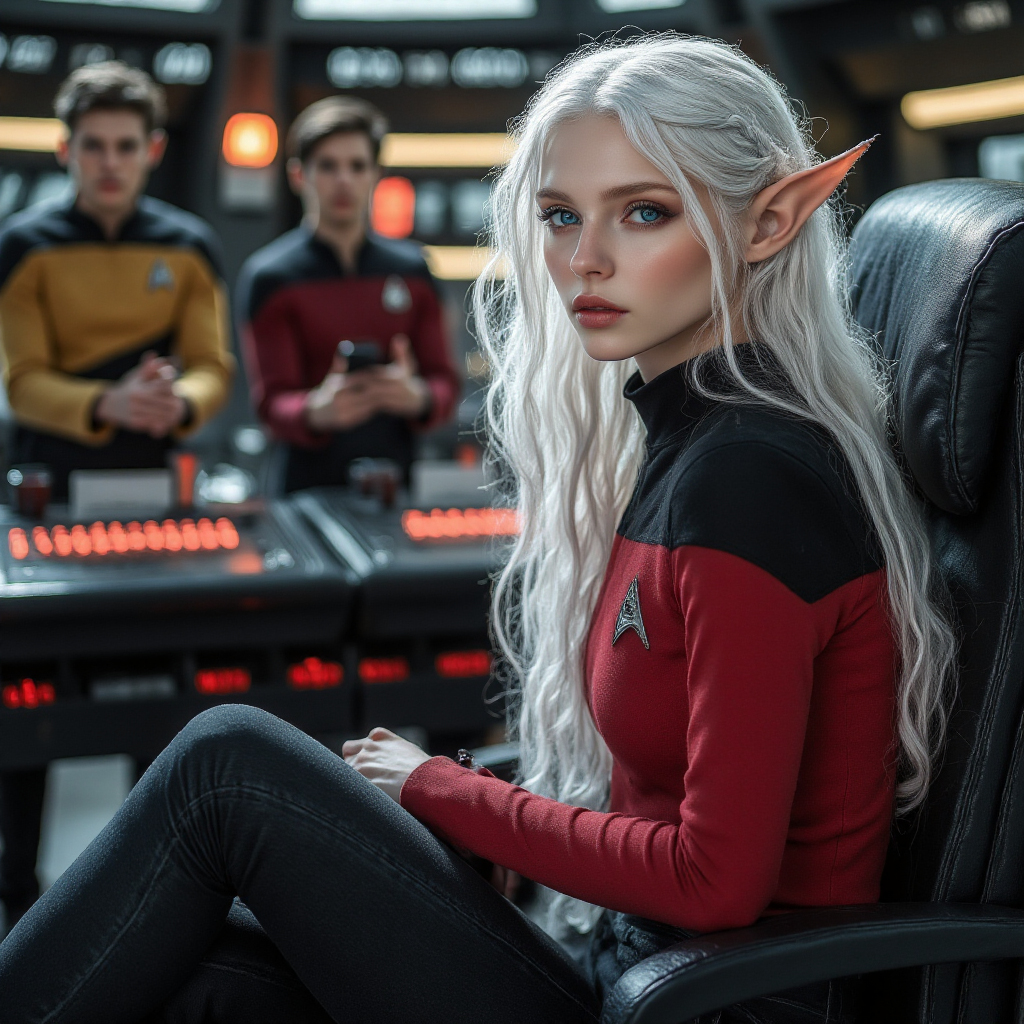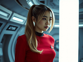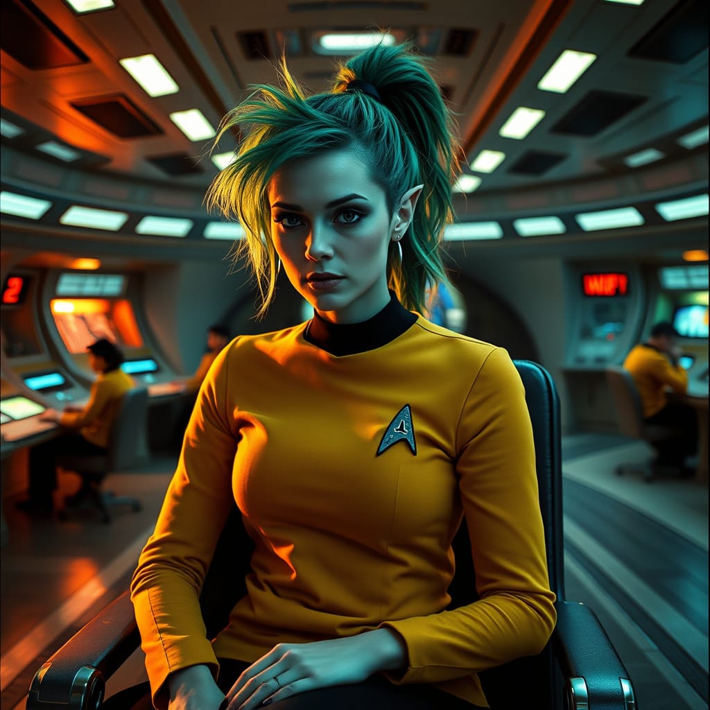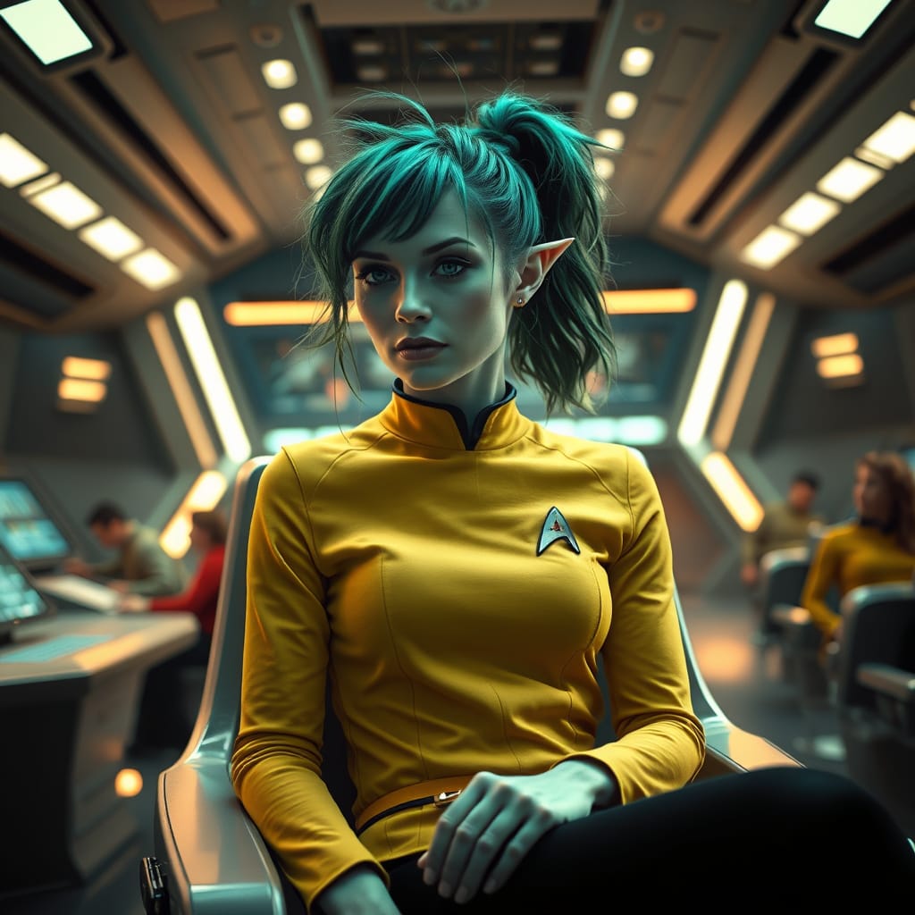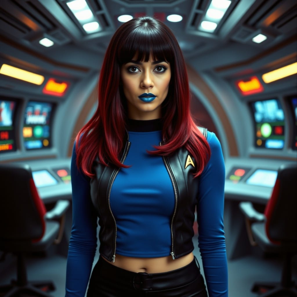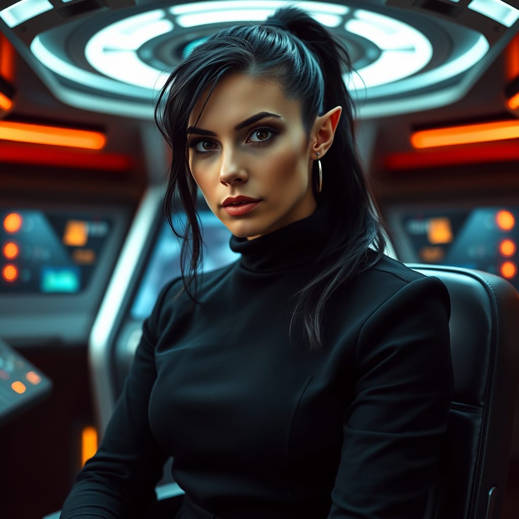 "Nike Noor at yor service.. You must Captain Vaughn," she easily replied, "And you should've seen my Terran Starfleet uniform. Of course, I was a genetic male then. That's why I escaped the Terran universe. To be my authentic self while the Empire restricted gender transition."