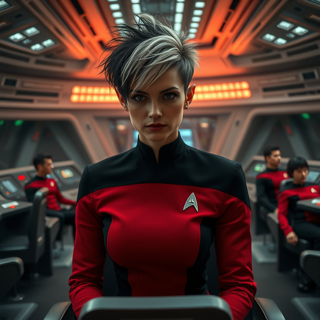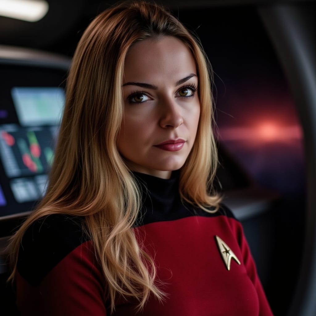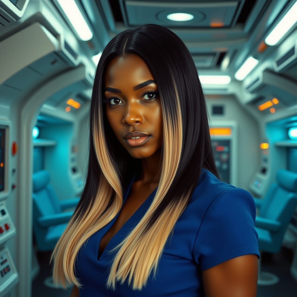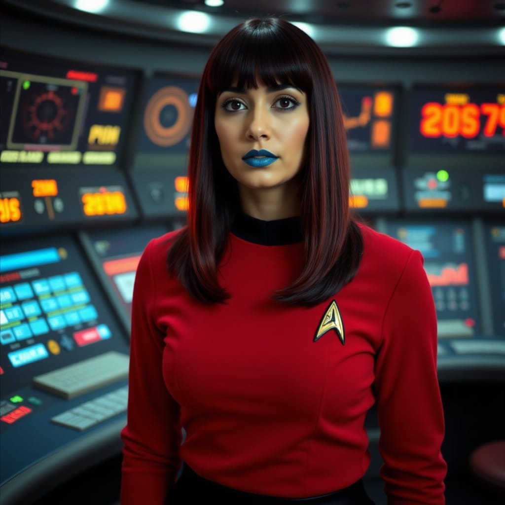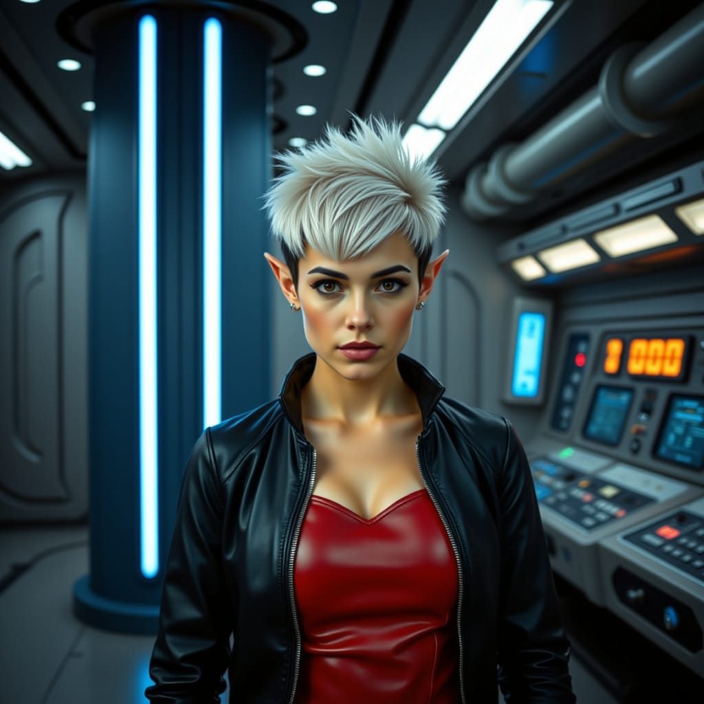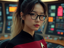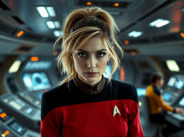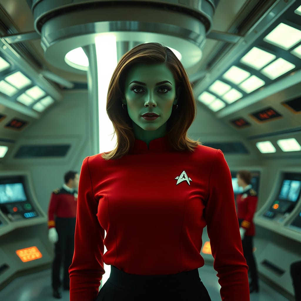 "Nike Noor at yor service.. You must Captain Vaughn," she easily replied, "And you should've seen my Terran Starfleet uniform. Of course, I was a genetic male then. That's why I escaped the Terran universe. To be my authentic self while the Empire restricted gender transition."