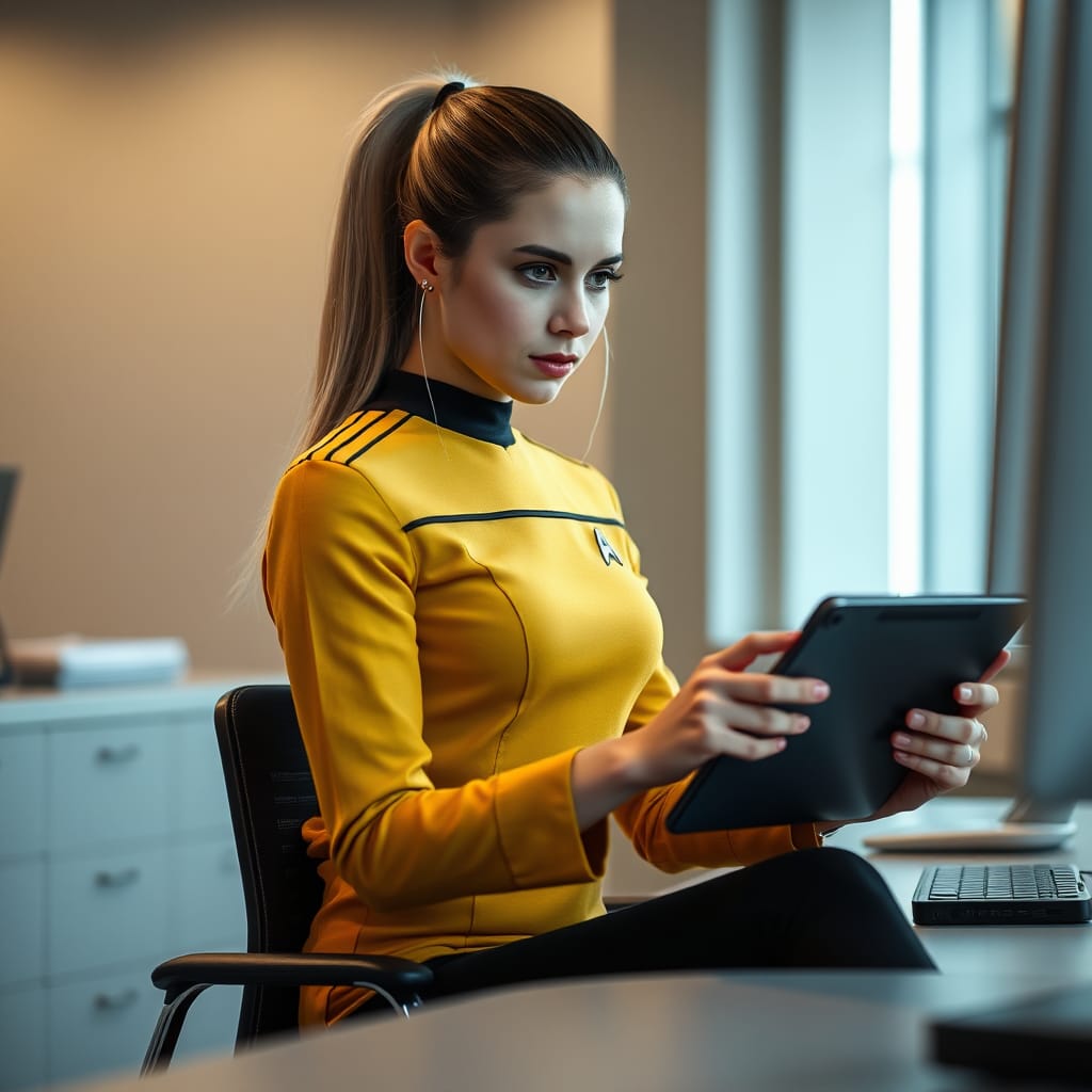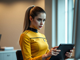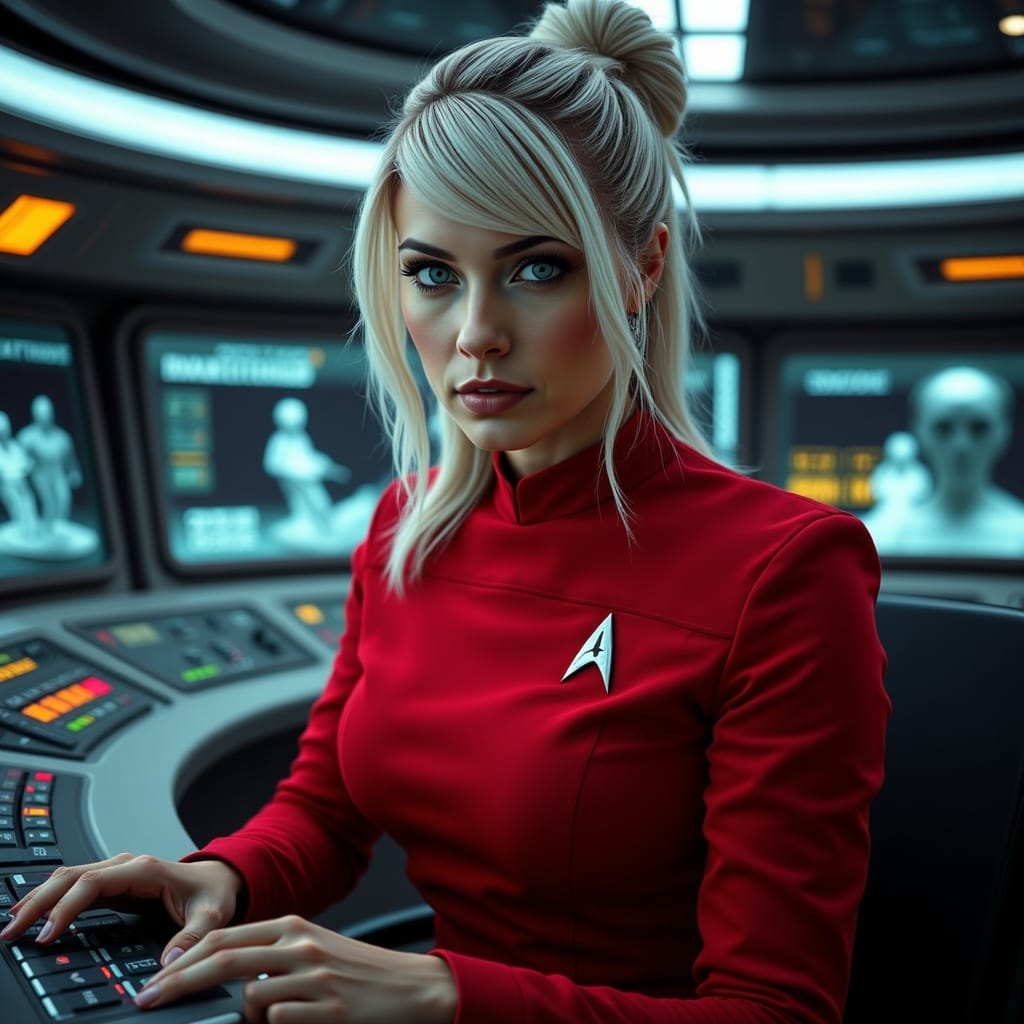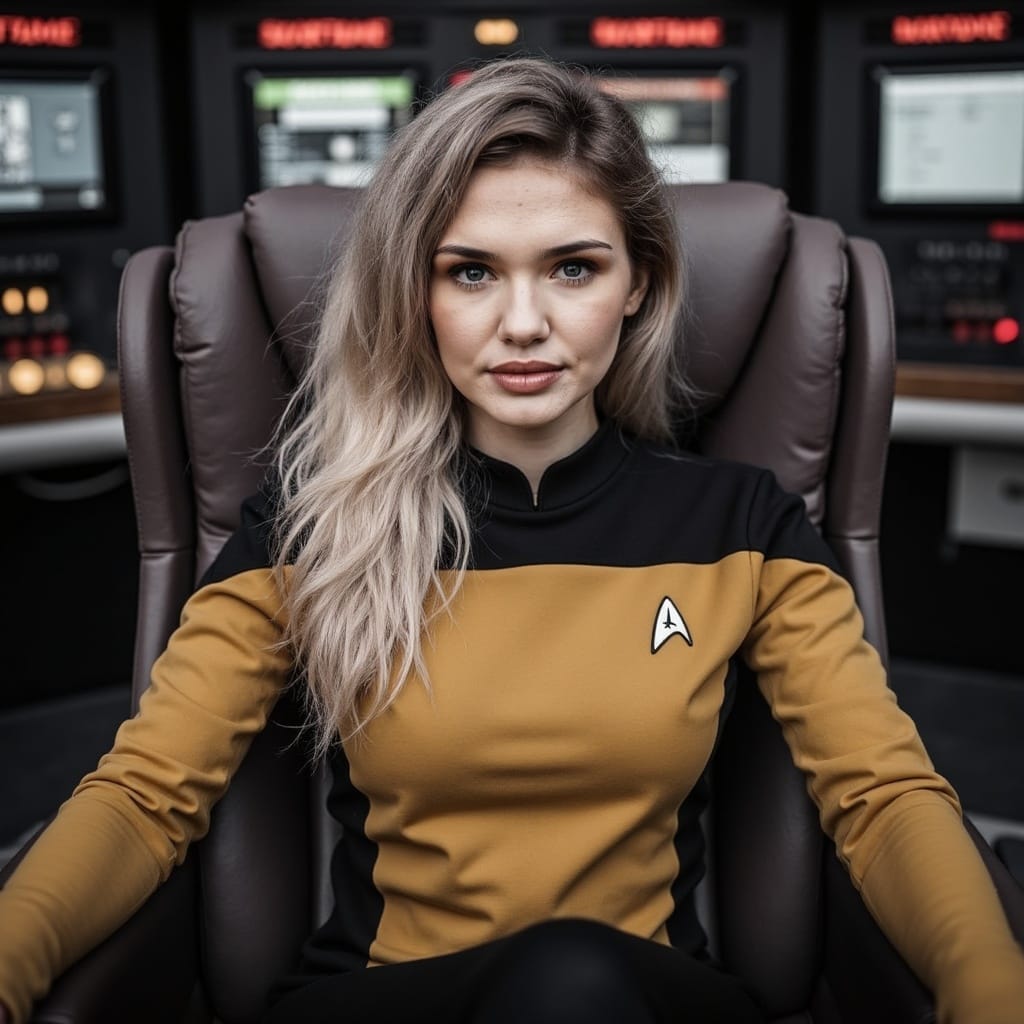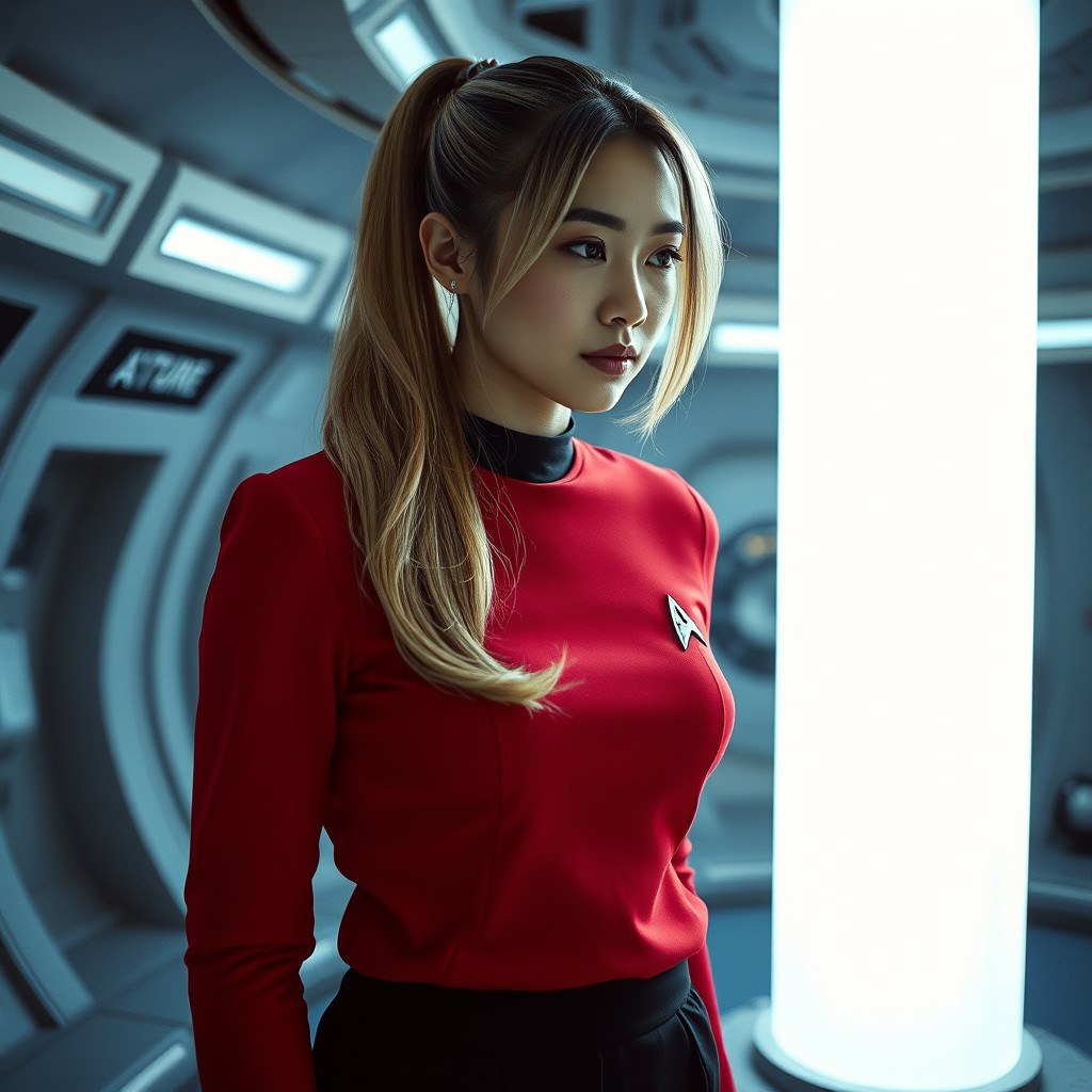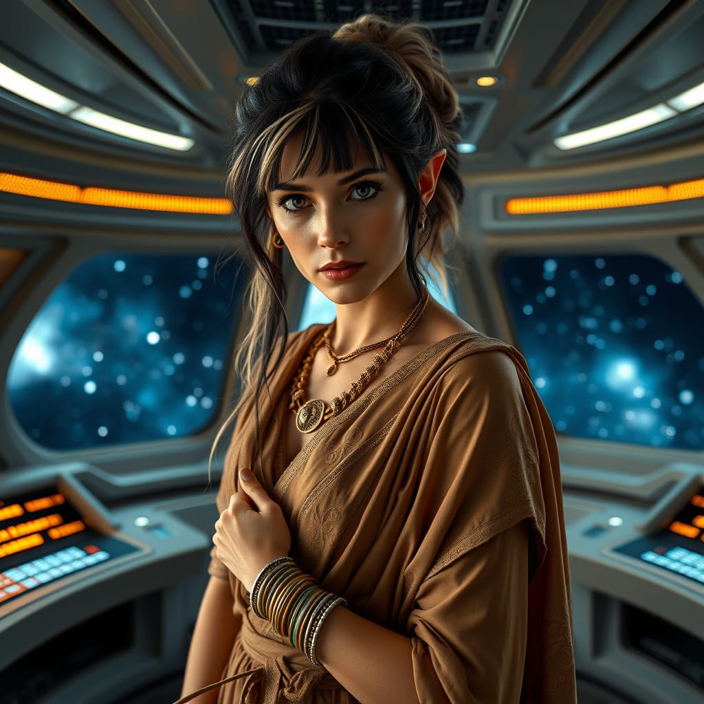 "Nike Noor at yor service.. You must Captain Vaughn," she easily replied, "And you should've seen my Terran Starfleet uniform. Of course, I was a genetic male then. That's why I escaped the Terran universe. To be my authentic self while the Empire restricted gender transition."