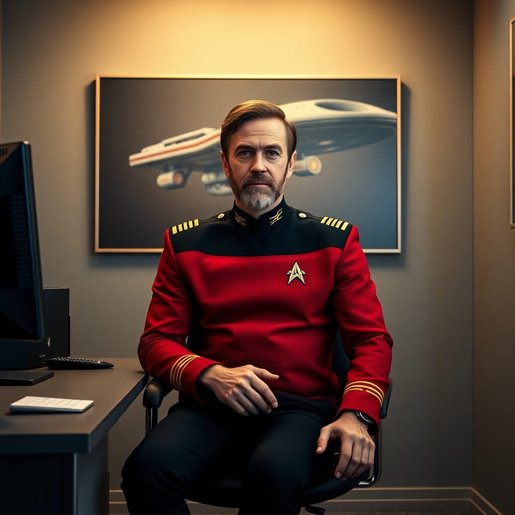 "I presume you're the infamous Captain N," Vaughn told the redhead woman in the white with gold trimming uniform, "Odd uniform choice for a member of the Iotian Starfleet."
